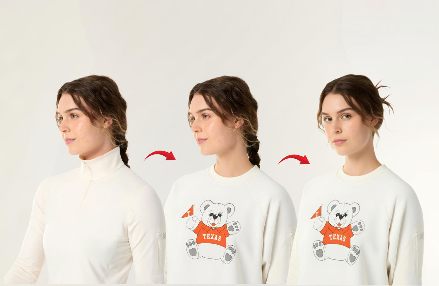 Get every color variation of your product shot on a professional model, without ever booking a studio.